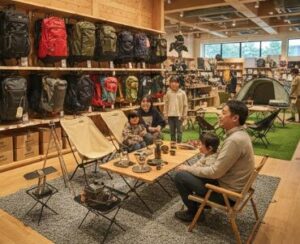 特筆すべきは、その「体験」へのこだわりです。例えば、自分が気になっているチェアを、実際に設営されている焚き火台の前に持っていき、高さを確認しながら座ってみる。あるいは、寝袋を実際に広げてみて、コット(キャンプ用ベッド)の上で横になってみる。こうした「キャンプ場での疑似体験」が、店内ですべて完結します。さらに、スタッフの方にお願いすれば、その場でテントの設営や撤収のレクチャーをしてくれることもあります。購入前に一度でも自分の手で触れておくことで、いざキャンプ場で「立て方が分からない!」とパニックになるのを防げるわけです。