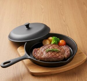 キャンプ用フライパンの代名詞とも言えるのが「鉄」です。熱伝導率が良く、高温で一気に焼き上げるステーキなどの料理に最適です。