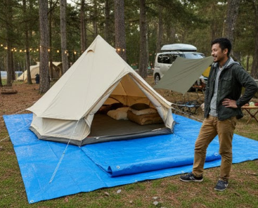 おすすめのレイヤリング(重ね方)は、「テントの床 → ブルーシート → 銀マット(アルミロールマット) → おしゃれなラグ」の順です。ブルーシートで湿気を止め、銀マットで断熱し、ラグで肌触りと見た目を良くする。この「三層構造」にすれば、ブルーシートのカサカサ音もラグの重みと厚みでほとんど気にならなくなります。お座敷スタイルを楽しむ場合も、この方法なら底冷え知らずで、自宅のリビングのように快適に過ごせますよ。見えない部分でしっかりと機能を果たしてもらう、まさに「縁の下の力持ち」的な使い方です。