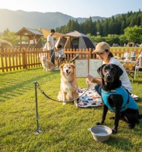 また、散歩中のマーキングにも細心の注意を払ってください。特に、他の人のテントのポール、立て看板、共有の炊事場付近などは、絶対にさせてはいけないポイントです。「あ、しそうだな」と思ったらリードを短く持って引き寄せる。万が一してしまったら、必ず持参したシャワーボトルの水で、これでもかというくらいしっかりと洗い流してください。水だけで不十分な場合は、ペットが舐めても安心な消臭成分入りの洗浄水を使うのも手ですね。私たちがキャンプ場を去った後、次にそこを使う人が「ここは犬の臭いがするな」と不快に思わないようにすること。「来た時よりも綺麗に」というキャンプの基本原則は、愛犬の排泄物に対しても同じことが言えます。お互いがマナーを守ることで、ペット可の貴重なキャンプ場をこれからも守っていきたいですね。