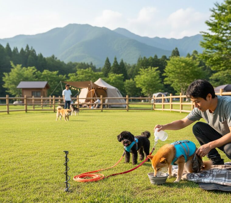 器についても、使い慣れたフードボウルを持っていくのが一番ですが、荷物を減らしたいならシリコン製の折りたたみボウルが便利ですね。ただ、軽いボウルだと食事中に動いてしまって犬が食べにくいこともあるので、底に滑り止めがついているものを選ぶか、マットを敷いてあげるといいかもしれません。また、重要なのが「水」です。キャンプ場の水は井戸水を使っている場合もあり、水質が普段と違うとお腹を壊す子がいます。念のため、自宅から飲み慣れた水を持参するか、ペット用の天然水を用意しておくのが無難ですね。特に夏場は熱中症対策で水分補給が欠かせないので、いつでも新鮮な水が飲めるように、多めにストックしておきましょう。食べ残したフードは野生動物(カラスやタヌキなど)を引き寄せる原因になるので、食べ終わったらすぐに片付けて、ジップロックなどで密閉して管理するのが、キャンプ場での正しいマナーですよ。
