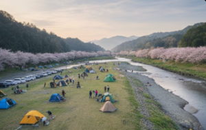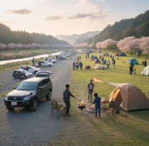 こちらも同様に環境美化協力金のみで利用できる河原のスポットです。春には桜並木が美しく、お花見キャンプの名所としても知られています。設備は簡易トイレと水道のみと非常にシンプルですが、その分、自然そのものを楽しみたいソロキャンパーからファミリーまで幅広く愛されています。予約不要で利用できる貴重な場所ですが、ハイシーズンには入場待ちの列ができるほどの人気スポットでもあるため、早朝の到着をおすすめします。近くにスーパーやホームセンターがあるため、買い出しには困りません。